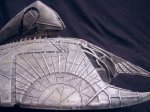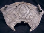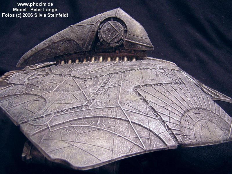 gehalten. Für die Bemalung habe ich ausschließlich Revell-Farben benutzt. Mit Airbrush habe ich das Modell in verschiedenen Grautönen grundiert und die Vertiefungen mit dunkleren Schattierungen nuanciert. Danach folgte ein Dry-Brush mit einem helleren Grau und Sandfarben, um einen gebrauchten Eindruck zu erwecken. Zum Konservieren habe ich eine gute Schicht matten Klarlack von Revell aufgetragen. Erst danach ein letztes Dry-Brushing mit Eisen, Gold und Silber, um metallische Effekte zu erzeugen. |