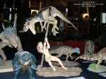 Nachdem alles verklebt war, wurden die Teile mit Milliput verspachtelt. Die Schuppen am Schwanz wurden mit einer Minifräse nachgebildet. Bei der Urzeitfrau wurden die Arme mit Stahlstiften versehen und dann an den Körper geklebt. Dasselbe habe ich auch mit den Füssen getan und sie an die Base geklebt. |