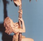 Nun wurde den Dino die Muster auf Kopf, Rücken, Beine und Schwanz mit Schwarz Matt aufgemalt. Auch bei der Frau ging es jetzt an die Details. Schwierig wurde die Bemalung bei dem Baumstamm, weil es zwischen dem Körper und den Stamm etwas eng wurde. Beim Dino wurden dann noch ein paar Stellen mit einer Erdfarbe / Transparentengemisch auf die Beine gesprüht. |