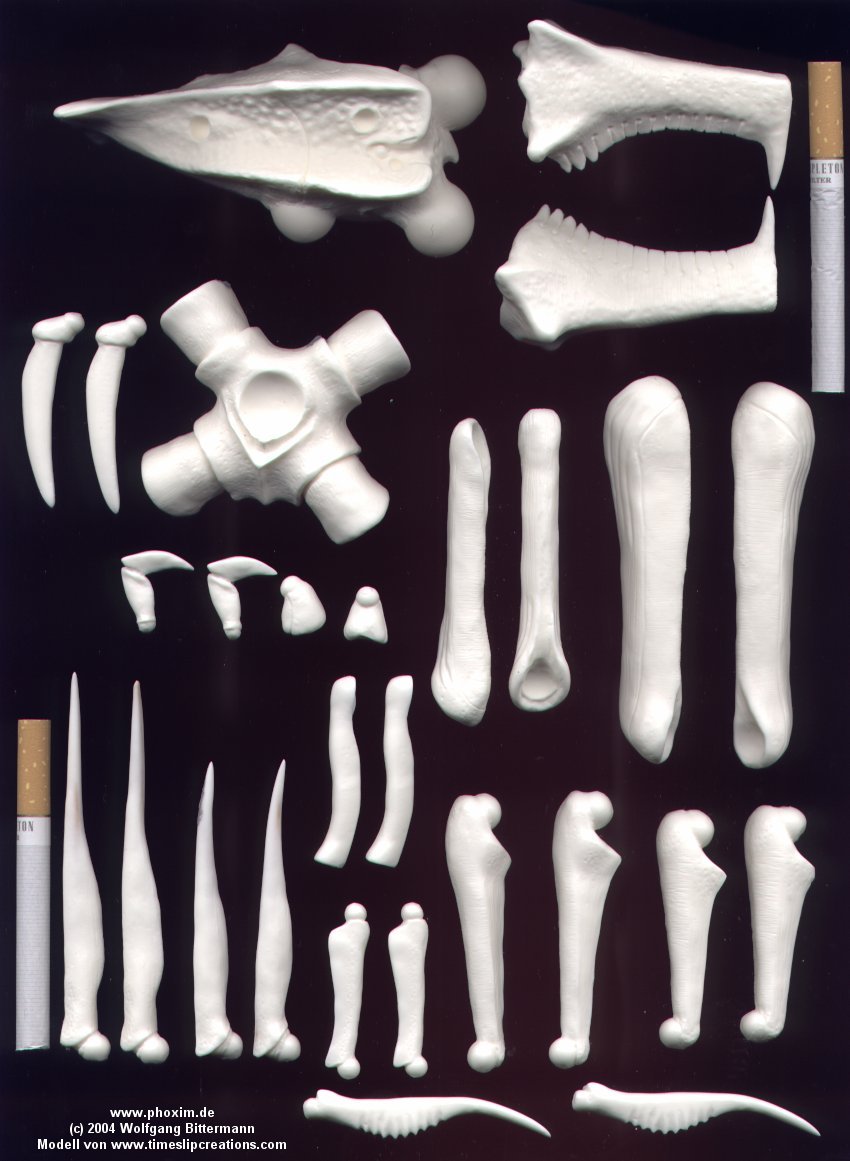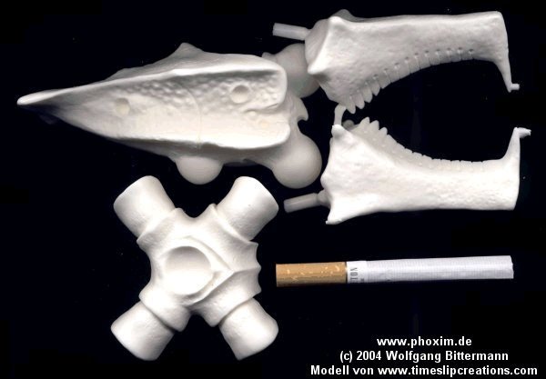 Wie schön gross das Modell wird, kann man auf diesem Bild gut erkennen. Dieses Bild ist entstanden, indem ich die Bauteile einfach auf den Scanner gelegt und gescannt habe. Zum Grössenvergleich habe ich mal eine Zigarette ( Marke: Lidel`s Rache ) danebengelegt. Ich spiele mit dem Gedanken, mir für dieses Modell ein Terrarium zuzulegen ;-) Weiter unten noch weitere Bilder von den Bauteilen - auch wieder direkt von Scanner aufgenommen. |