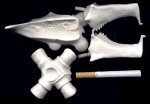 | Hier nochmal alle Teile im gesäuberten Zustand. Als Grössenvergleich wieder Zigaretten. Ich freue mich schon jetzt riesig auf das fertige Modell. Allerdings habe ich zuvor noch einige andere Projekte vor mir. Aber wenn es was neues über diese Modell zu berichten gibt, wird es wie immer in der Rubrik "Whats new" vermerkt. Ich kann Euch diesen Bausatz nur wärmstens empfehlen, und als Starship Troopers - Fan kommt man ohnehin nicht an diesem Monster Warrior Bug vorbei. |