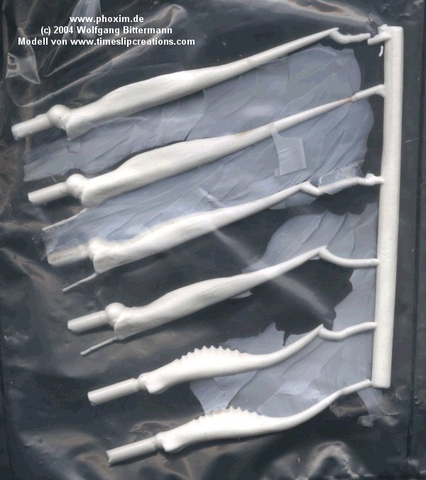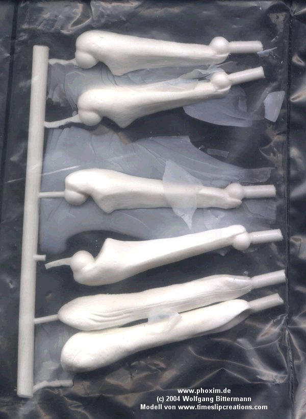 Das ist der neue Bug Warrior Bausatz aus dem bekannten Science Fiction Spektakel "Starship Troopers". Der Kit wird von dem Hersteller Timeslip Creations vertrieben und kommt im Massstab 1:20. Dan Perez hat diesen Warrior hervorragend modelliert, besucht mal seine Webseite unter http://www.danperezstudios.com, hier gibt es eine Menge tolle Sachen zu sehen. Der Bausatz besteht aus 28 sauber gegossenen Resinteilen, ich habe etwa drei Blasen gefunden. Die einzelnen Teile sind schön säuberlich in einem Plastikbeutel eingeschweisst. Das Resin ist recht weich und ich habe kaum eine Stunde gebraucht, um die wenigen Gussgrate komplett zu entfernen. Dem Bausatz liegt eine 4-seitige Anleitung in englischer Sprache bei, die auch ohne Englischkenntnisse wegen der Sprengzeichnung des Kits gut zu verstehen ist. Der Warrior Bug kostet 75 $ zzgl. Porto und ist sein Geld echt wert. Bezahlt habe ich den Bausatz ganz bequem mit Paypal. Paypal gibt es jetzt auch in deutscher Sprache und man braucht auch keine Kreditkarte mehr, um ein Paypal - Account einzurichten. Das ist wohl einer der besten Methoden, mal schnell Geld für schicke Bausätze über den grossen Teich zu schicken. |