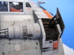 Die Rippen der Triebwerke wurden schwarz lackiert und dann großzügig mit rostfarbenen washings und Pigmenten behandelt. Ebenso die unteren Luftbremsenklappen und die Innenbereiche der Luftbremsen. Zusätzlich wurden die Rippen dann mit GunMetal Pigmenten von abgerieben. |