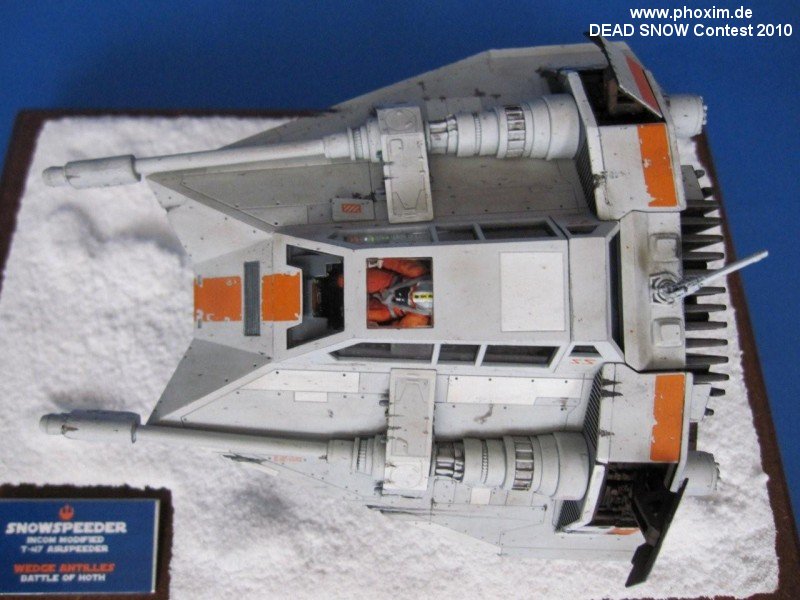 Das gebaute Modell stellt den Snowspeeder von Wedge Antilles aus dieser Schlacht dar. |