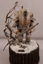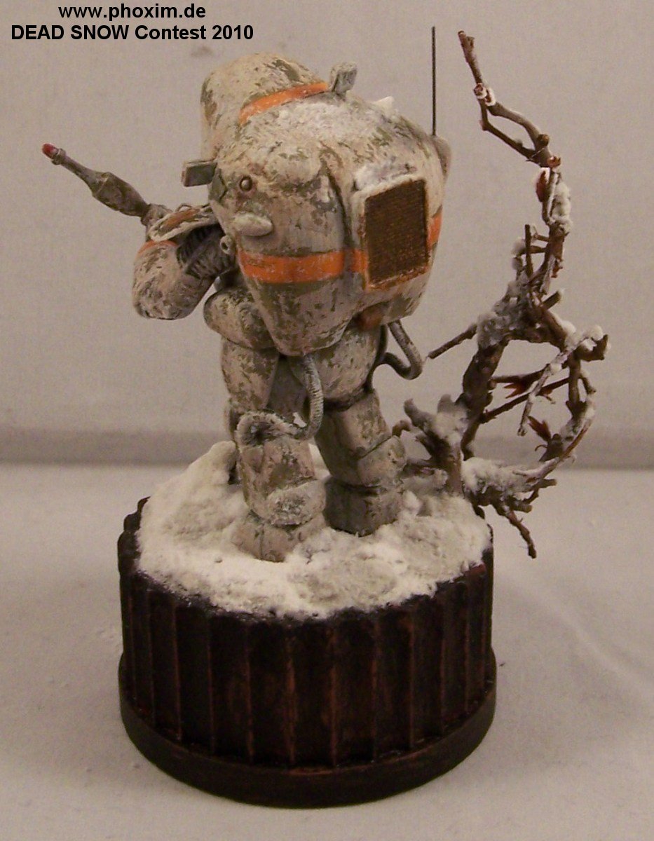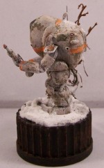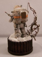 damage. The model was sealed again and then given a few dirt washes. Then at the end, some snow was applied and the whole thing coated in testors dullcoat. The base was given multiple dirt washes with an oily colour to achieve this effect, the original colour was reddish brown. |