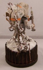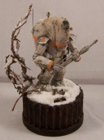 Base: The base is a cap from a safety bottle used at laboratories which I got from a colleague. A layer of putty was used to create a basic ground structure, which was painted, and the covered in snow. The tree and branches are from a dried bonsai my wife got me once. Snow was done using Sodium bi-carbonate. |