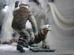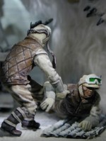 Inspiriert durch ein Gemälde im Internet ("Wampa Attack!" von Hugh Fleming ) habe ich schon vor einiger Zeit begonnen, ein kleines Diorama zu den "cut scenes" aus der Star Wars - Episode "Das Imperium schlägt zurück" zu bauen. Eine Kampfszene zwischen den auf Hoth stationierten Rebellen und einigen, in den Stützpunkt eindringenden Wampas fiel ja damals Mr. Lucas` Schneidetisch zum Opfer. Gott sei Dank haben einige websites Fotos und Beschreibungen dazu für die Nachwelt bewahrt. |
