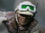 Die Schneebrillen der Rebellensoldaten bestehen aus tiefgezogenem Klarsicht- verpackungsmaterial das heutzutage fast bei jedem Einkauf anfällt. Die „Gläser“ wurden mit der Nagelschere einer Schneebrillenform entsprechend ausgeschnitten und darauf wieder mit „Green Stuff“ die Umrandungen modelliert. |