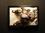 Step3 paint it! Ebenfalls mit einem Schwamm wurde in mehreren Lagen Farbe der Firma Games Workshop aufgetupft. Hier kamen verschiedene Töne von schwarz, braun, hellbraun bis hin zu rot zum Einsatz. |