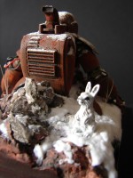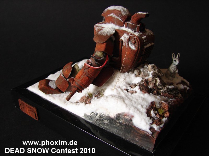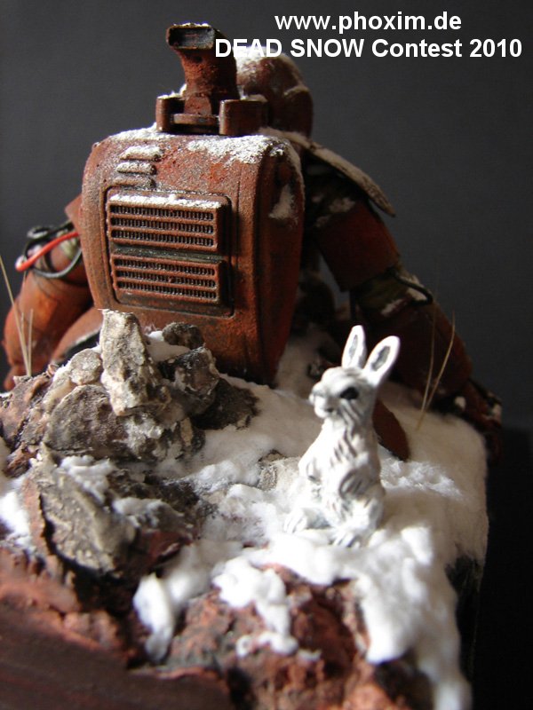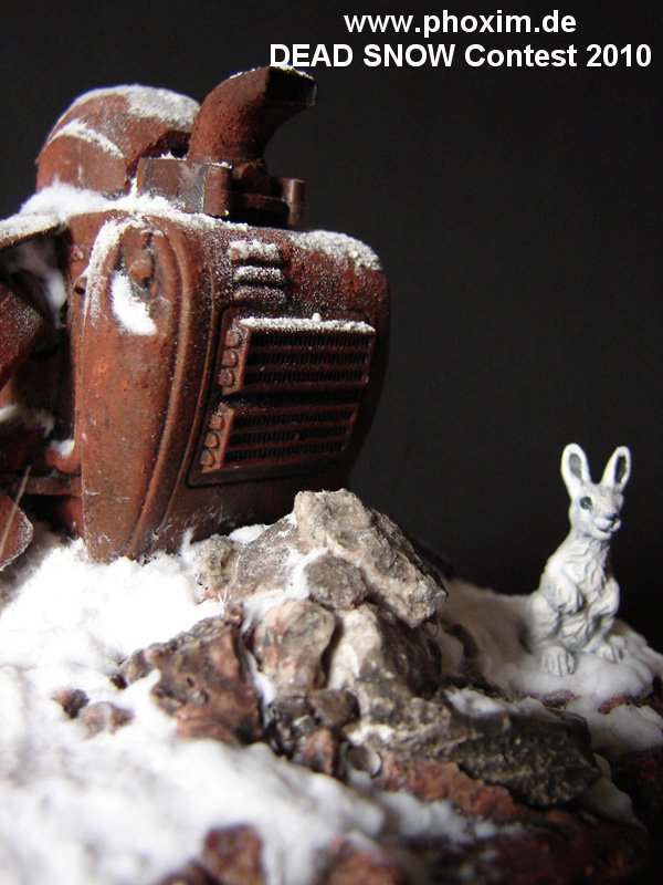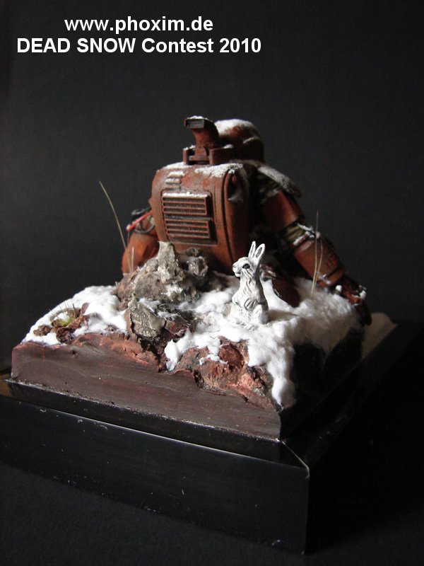 eisige Tundra, die sich langsam wieder mit leben füllt. Hier und da schafft es ein grüner Halm die Schneedecke zu durchbrechen und auch die Fauna beginnt sich den steigenden Temperaturen anzupassen. Vielleicht spürt der Schneehase eine lauernde Gefahr in Form eines umherstreifenden Fuchses, vielleicht wurde er aber auch durch das knattern der Dieselmotoren vorrückender Panzer Kampf Anzüge aufgeschreckt… |