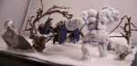 Stones are just that, stones, repainted to be more like rock. The trees are some scraps of bush I found outside. Snow was done with Sodium bi-carbonate, somewhat messed up where the men have walked. |
