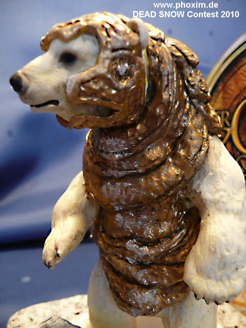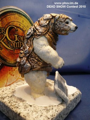 „Zur Figur“ Meine Tochter hatte schon seit Jahren diese Schleich Spielzeugfigur im Regal, und seit ich „Der goldene Kompass“ gesehen hatte wollte ich diese schon immer zur Basis einer Panserbjorn – Figur machen. Iorek ist der eigentliche Erbe des Panserbjorn Königreiches und muss sich im verlauf der Handlung sein reich in einem Duell gegen den Usurpator zurückholen. In einem Kampf auf Leben und Tot in der Eiswüste… |