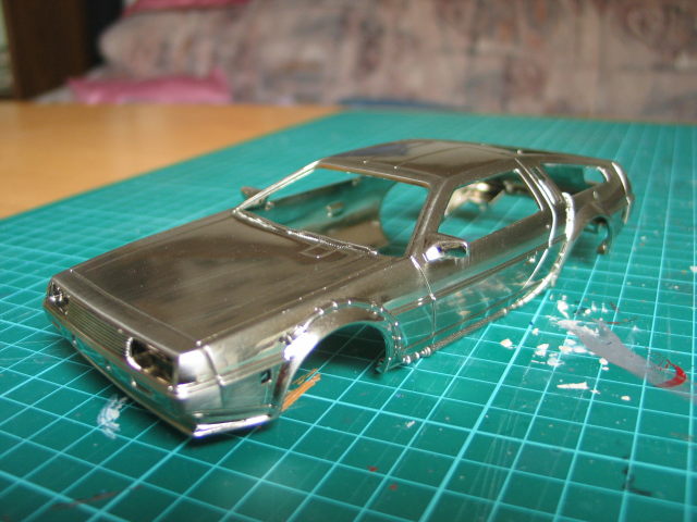Das ganze in Anthrazit gestrichen sieht dann schon anders aus (so sieht der Kunststoff des DeLorean unter dem Blech aus).