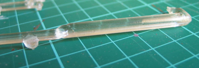 Farblich muß ich da noch was tun (die Drähte habe ich in einem gravierten Nut verschwinden lassen und zugespachtelt). Und die Drähte darf ich nicht zu oft biegen - wenn die brechen wird's blöd...