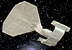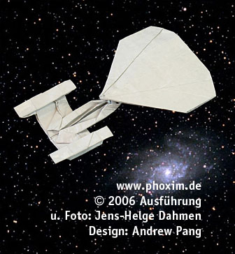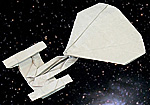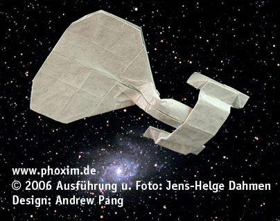 Das endgültige Modell misst c a. 9 cm. Das Modell-Design stammt von Andrew Pang. Die Faltanleitung ist in seinem Buch "Star Trek Paper Universe" zu finden. |
