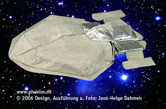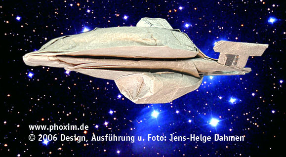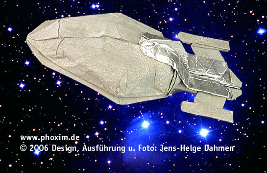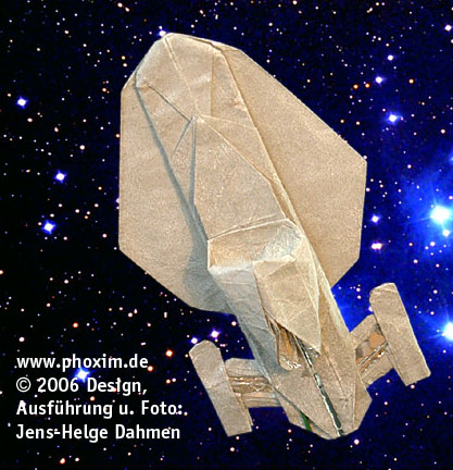 Nachdem die Modellentwicklung im Jahr 2003 nach drei Monaten in einer Sackgasse endete, bin ich ein Jahr später nach weiteren sechs Monaten Entwicklungszeit erfolgreich gewesen. Mit 74 Faltschritten ist es meine bisher komplexeste Schöpfung (Stand: 2006). |
