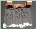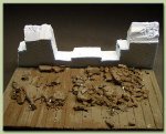 Bild 24-26: Die Mauer des Dioramas wurde aus einer Hartschaumplatte herausgeschnitten und mit wasserlöslicher Spachtelmasse aufmodelliert. |