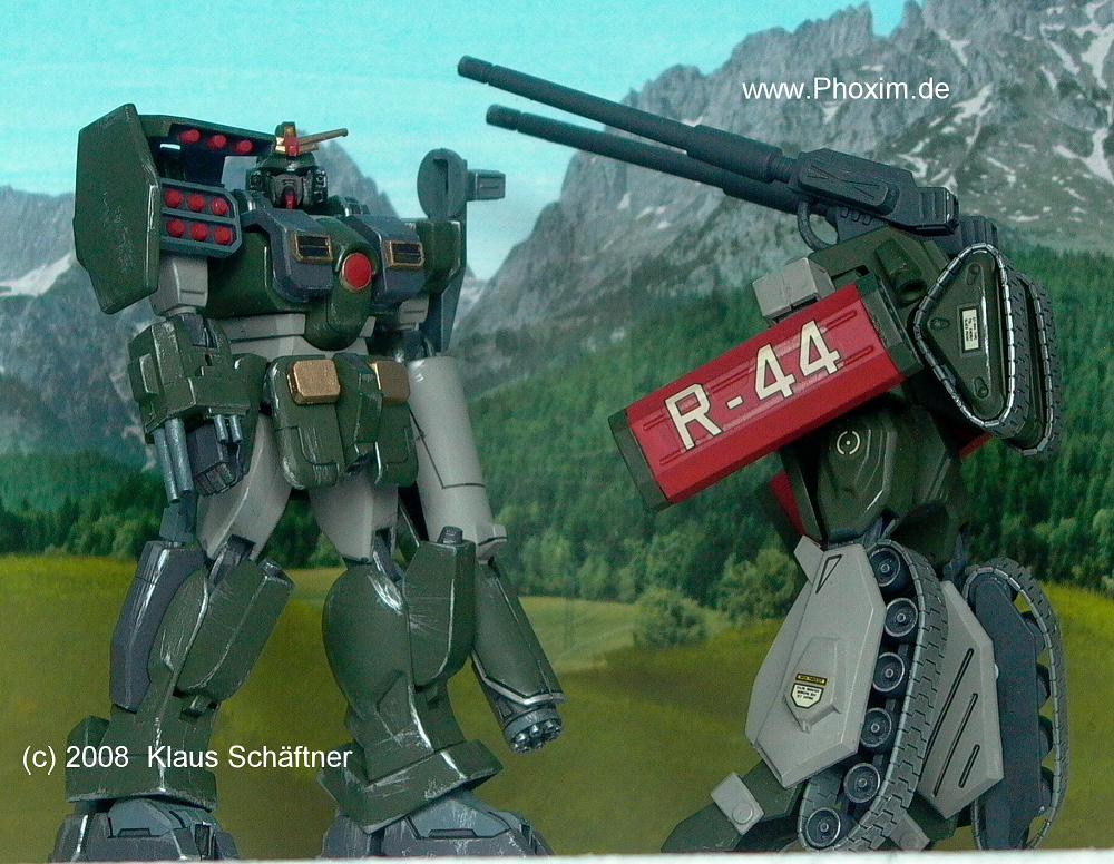 gewährleistet, wobei der RX-77 zusätzlich eine Langwaffe o.ä. mitführen kann.