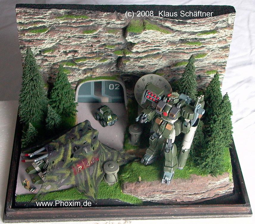 Gundam Destroy um. Das Diorama zeigt den Zugang zu einer alten Militärbasis in den Bergen, welche von den