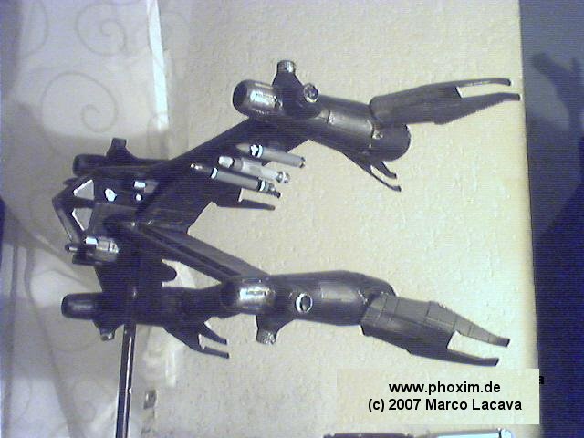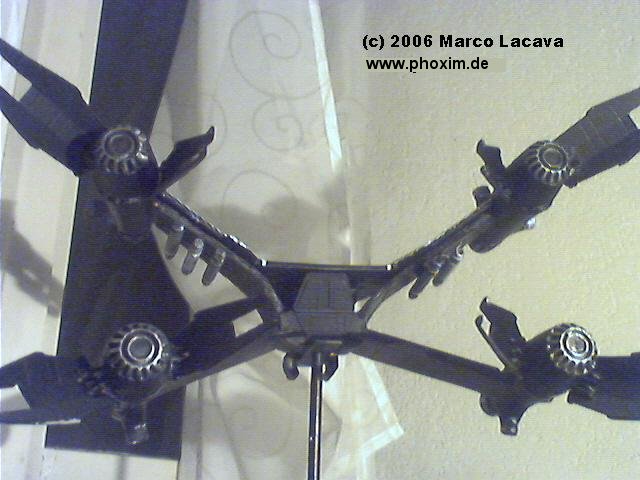 Naja ich habe vom Redo leider keine Bilder. Aber ich gab mir Mühe das Modell in den eigentlichen Zustand zu versetzten wobei ich dann auch bemerkte warum die Flügelunterbauten verkehrt herum eingebaut waren, die waren nämlich gebrochen. Also "Greenstuff" gepackt (Games Workshop sei dank) und ab ans Werk leider war es mir nicht möglich den 100% original Zustand wieder herzustellen aber ich finde ich bin verdammt nah ran gekommen. |