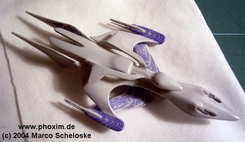wurden lackiert: Die Bordkanonen, die Triebwerksdüsen, der Graben
