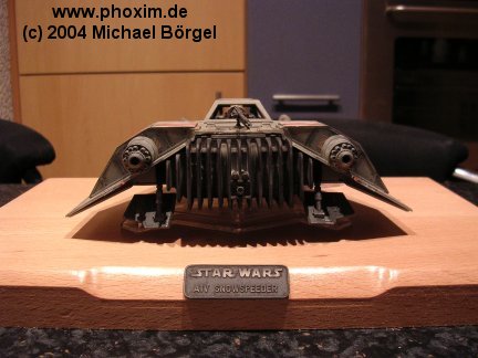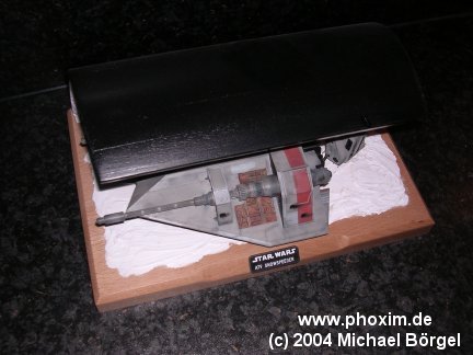 Für die Base habe ich mir etwas Besonderes einfallen lassen. Das Ganze wird noch ein paar Wochen dauern, wird aber (hoffentlich) n echter Hingucker. Die Fotos davon reiche ich Wolfgang dann nach. Alles in Allem ein klasse Bausatz, den ich nur jedem StarWars-Modellbauer empfehlen kann. |