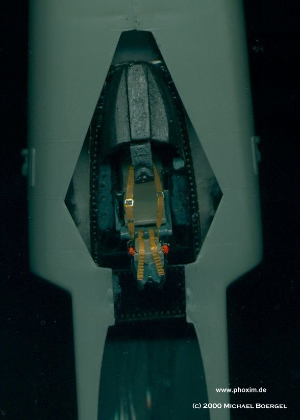 Schön, daß Revell diese coole Schleuder als Bausatz herausgebracht hat. Da ich beim näheren Untersuchen des Inhalts weder ein Fahrwerk, noch ein vernünftiges Cockpit vorfand, beschloß ich diesen Mißstand zu ändern. Zuerst habe ich vorsichtig die Scheiben aus der massiven Kanzel ausgeschnitten. Für die neue Verglasung habe ich Folie für Tageslichtprojektoren verwendet. Die genaue Größe der Scheiben habe ich aus dem beiliegenden Abziehbilderbogen übertragen. Für das Einkleben der neuen Scheiben sollte man lösungsmittelfreien Kleber oder Weißleim benutzen, da diese sonst "blind" werden. |