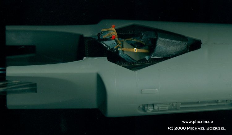 Die Armaturen und den Pilotensitz habe ich aus einem Jetbausatz entnommen. Im Vorwort der Bauanleitung steht, daß die Viper in "Natura" ca 9m lang ist. Gemessen am Modell ergibt sich daraus ein Maßstab von 1:32. Da im Rumpf nur sehr wenig Platz vorhanden war habe ich für das Cockpit Teile in 1:48 verwendet. Darüber hinaus habe ich das Cockpit beleuchtet. |