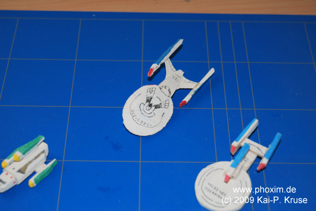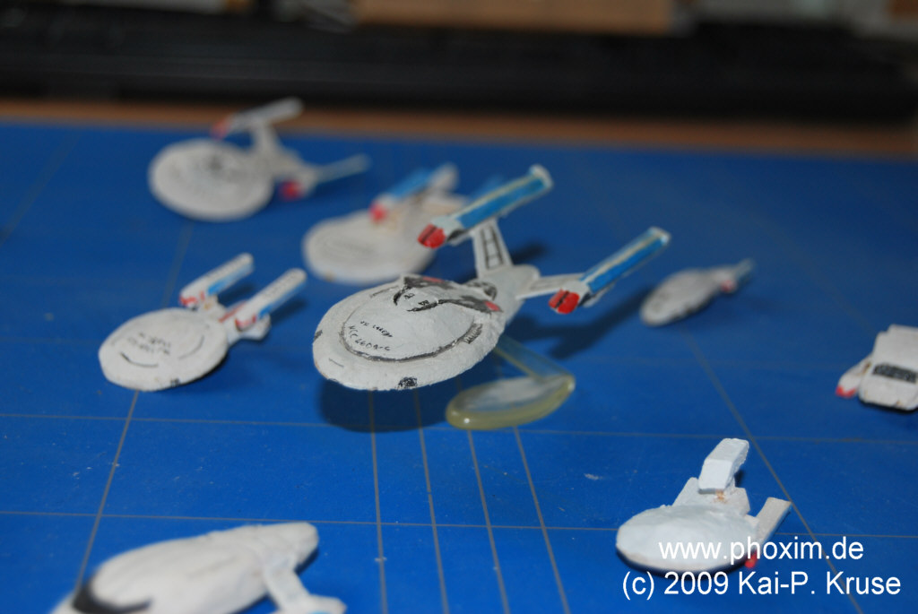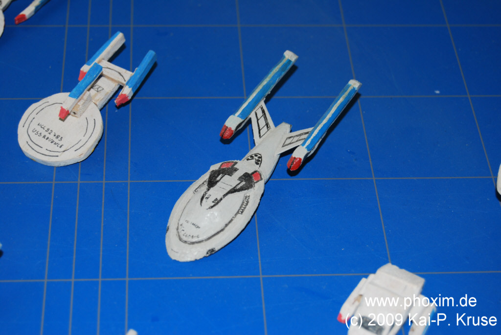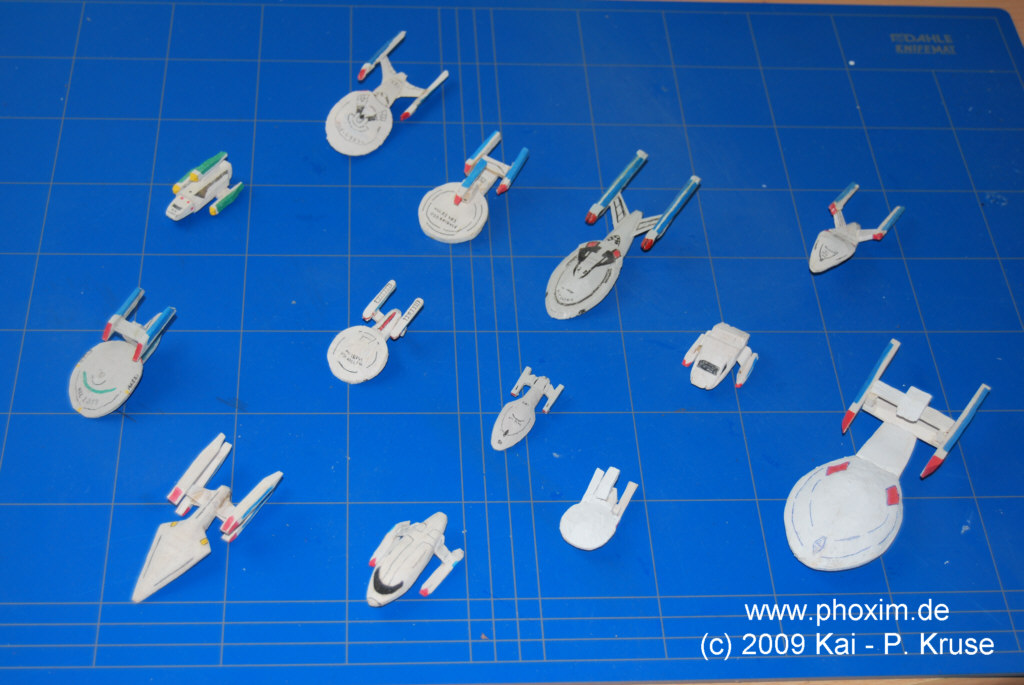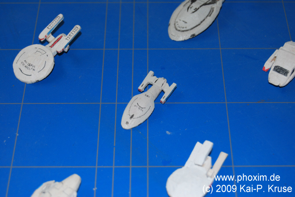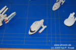 Bild 1 Das ist meine kleine Sternenflotte. Alle Schiffe sind aus Balsaholz gebaut und mit Revel Farben lackiert. |