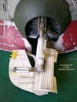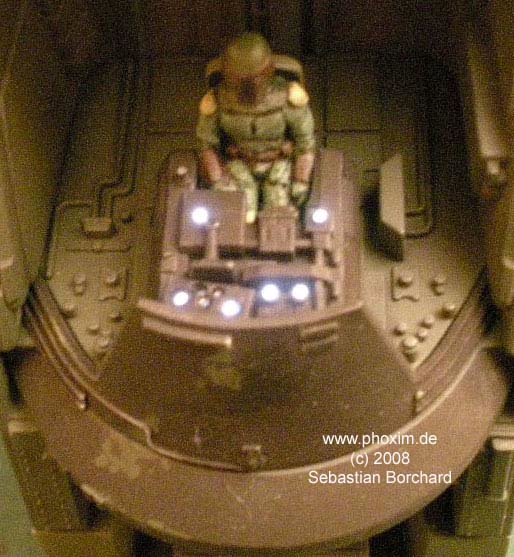 | Auch hier musste etwas gebohrt und gefräst werden um Platz für die LEDs zu schaffen. Die transparenten Teile des Antriebs habe ich mit mattem Klarlack lackiert, damit das Licht etwas diffuser abstrahlt und man die einzelnen LEDs nicht sehen kann. | |