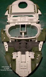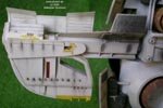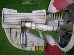 Die Teile sind sehr passgenau und es muss, außer bei den beiden vorderen Rumpfhälften, kaum gespachtelt werden. Für die Beleuchtung des Cockpits habe ich einige Teile aufgebohrt, wie in den Bilder aus der Bauphase zu sehen ist, um Platz für eine weiße 3mm LED und die Lichtleitfasern zu schaffen. |