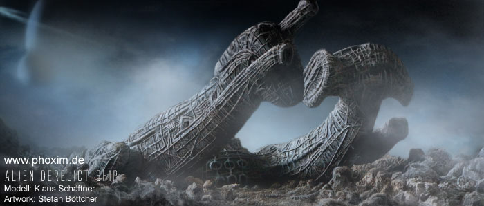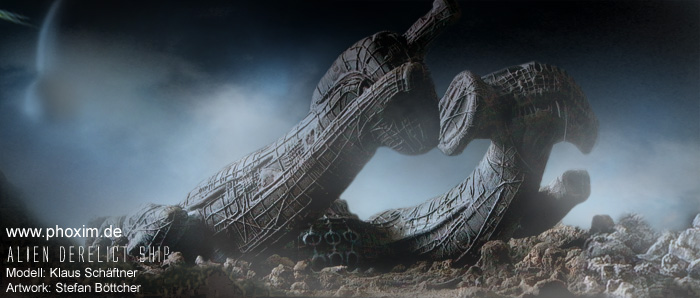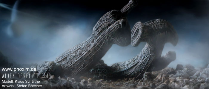 Das Projekt des Derelict Ship ist ein gutes Beispiel für eine Teamarbeit auf diesem Gebiet. Ich selbst besitze kein diesbezügliches Modell, durfte aber auf das hervorragend gestaltete und hochdetailierte Derelict Modell von Klaus Schäftner zurückgreifen. Nochmals vielen Dank für diese tolle Unterstützung, Klaus!! Aus einer Vielzahl an Modellfotos, die er mir zur Verfügung stellte, wählte ich zunächst meinen Favoriten. |