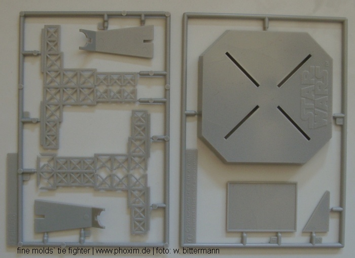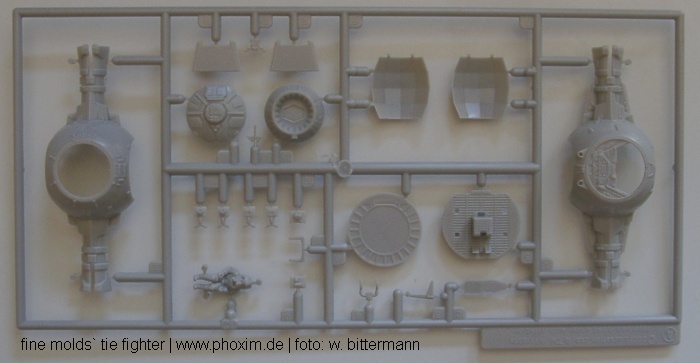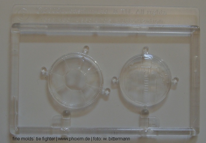 Der neue Tie Fighter Bausatz von Fine Molds hat es in sich! Ich habe für Euch mal auf die Schnelle einige Fotos vom Kit geschossen. Die Frontscheibe und die Dachluke sind im transparenten Kunststoff. Dem Bausatz sind fertige Masken für diese Teile beigelegt, so spart Ihr Euch das mühsame selberschneiden der Masken - eine toller Service! |