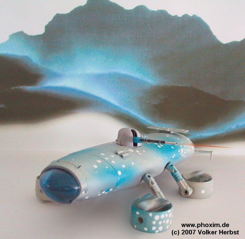 Mit seiner Analize-gun und dem Lasermarkierer kann er Stützpunkte auskundschaften, erkennen was sich z.B. in Bunkern befindet und diese Ziele mit dem Laser markieren, um dann seine Einheiten gezielt zum Einsatz bringen. Auf stark verschneiten Flächen schaffen es die vier Gondeln, auf Umkehrschub nach oben gestellt, kurz abzuheben und mit Vollschub über die Hindernisse zu “schweben”. |