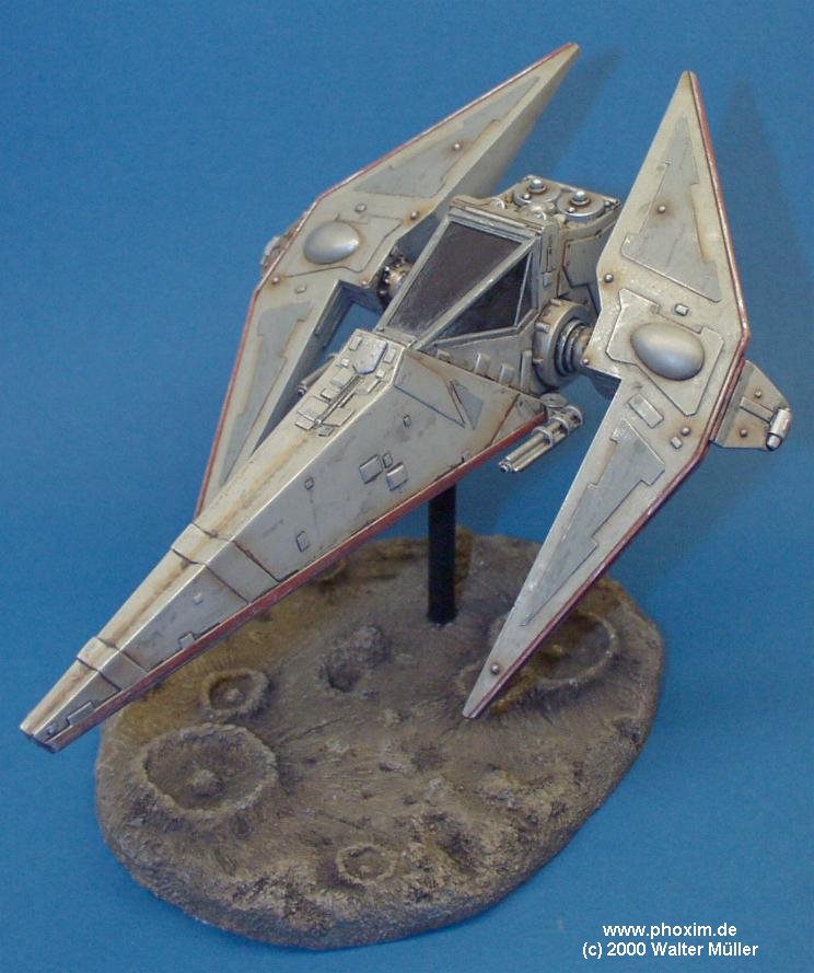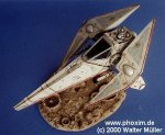 Kurz nach Erscheinen dieses Berichtes habe ich mich bei Walter erkundigt, ob ich auch so einen Bausatz bei ihm kaufen könnte. Mir gefällt das Disign dieses Jägers sehr gut - so ein Mix aus "X-Wing und Colonial Viper" finde ich klasse. So eine Eigenkreation ist auch mal was Besonderes für die heimische Vitrine. Leider waren bereits alle Exemplare ausverkauft. Walter konnte auch keine neuen Abgüsse mehr machen, weil die Urmodelle bei einem Umzug verloren gingen. Anfang 2006 Kamen die Urmodelle bei einer Entrümpelungsaktion wieder zum Vorschein... Gott sei Dank.... |