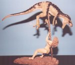 Nachdem alles verklebt war, wurden die Teile mit Milliput verspachtelt. Die Schuppen am Schwanz wurden mit einer Minifräse nachgebildet. Bei der Urzeitfrau wurden die Arme mit Stahlstiften versehen und dann an den Körper geklebt. Dasselbe habe ich auch mit den Füssen getan und sie an die Base geklebt. |