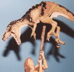 Stuck on you heißt dieser interssante Kit. Er stammt aus der Hand des englischen Sculptors Tony McVey und seiner Firma Menergie Productions. Der Kit ist aus Resin und hat eine Höhe von 36 cm. Das geniale an dem Kit ist ,das im Baumstamm eine Eisenstange eingefasst ist. Sicher, um das Gewicht des Dinos zu halten. Als erstes wurden die Teile in einem Spülmittelbad gesäubert. |