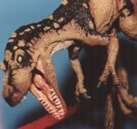 Als nächstes wurden Löcher in die Teile gebohrt um sie beim verkleben mit Stahlstiften zu verbinden. Ich baute erst den Dino zusammen. Ich mußte noch einige Zähne nachmodellieren, die beim Transport abgebrochen waren. Die Teile hatten eine Gute Paßgenauigkeit. Bis auf den Schwanz, der viel Schleifarbeit über sich ergehen lassen mußte. |
