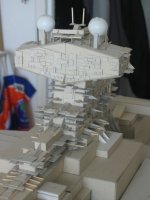 Dieses Modell besteht nur aus Pappe und ein wenig Balsaholz. Die Idee den Supersternenzerstörer zu bauen ist ziemlich alt, nur hatte ich nie so richtig Zeit dafür gefunden. |