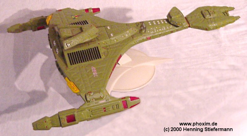 Hier einige Bilder meines Klingon Attack Cruiser`s. Er tauchte erstmals in der Star Trek - The Next Generation Serie auf. Laut der Bastelanleitung kann dass schwere Kampfschiff mit verschiedenen Kampfbrücken ausgerüstet werden, um es den jeweiligen Erfordernissen anzupassen. |