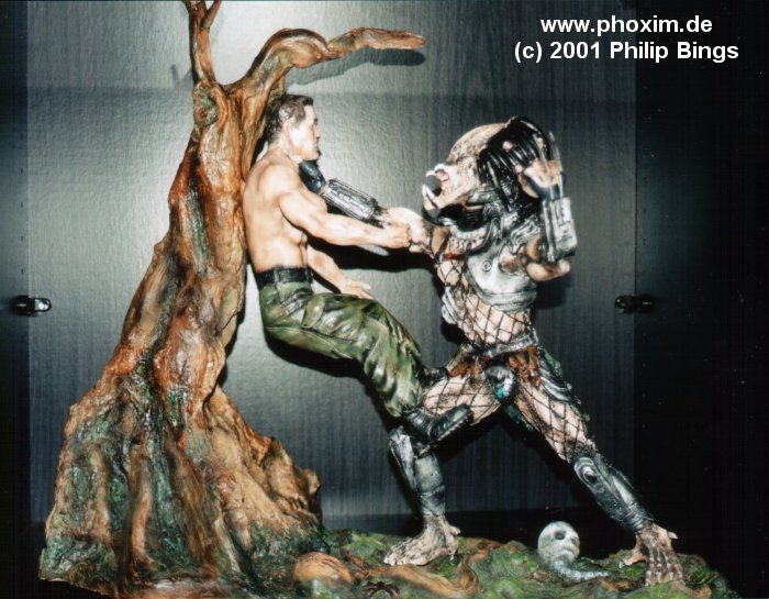 1-Kit: Confrontation Dieses Kit habe ich bereits 1997 fertig gestellt. Meiner Meinung nach ist es der schönste Predator in 1:5. Über den Arnie kann man streiten, aber ich finde die likeness ganz ok. |