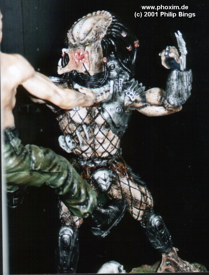 Besoders gut gefällt mir die Position der Figuren zusammen mit der Base. Auch wenn die Scene nicht ganz Film-Getreu ist (Der Predator hat zu dem Zeitpunkt eigentlich noch die Maske auf und die Arm-Klingen müssten eigentlich am rechten Arm sein und nicht am linken). |