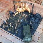 Als nächstes kam der Panzer an die Reihe, er sollte „Battle-damaged“ sein und die Türe mit Säure zerfressen. Danach machte ich mich an den Bau des Dioramas. |