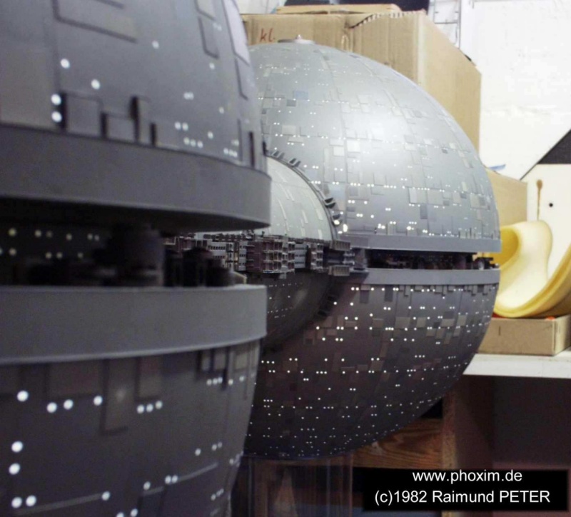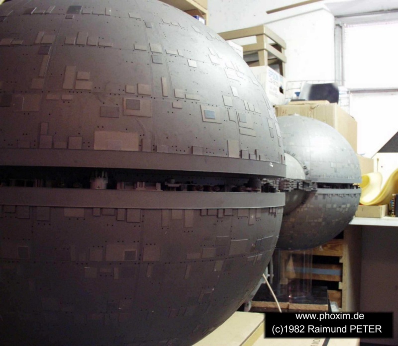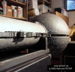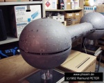 Das Modell besteht zur Gänze aus Plexiglas und wurde damals noch mit Kunstharzlack gespritzt. Ich verwendete eine eigene Mischung aus hellgrau, schwarz und "aluminit". Das gibt einen leicht metallischen, matten Glanz. Zu stark soll es ja nicht glänzen, weil sonst der "Echtheitscharakter" verloren geht. Zuvor müssen die Plexiglaskugeln natürlich mit schwarzer Farbe lackiert werden, um eine ausreichende Lichtdichtheit zu erhalten. |