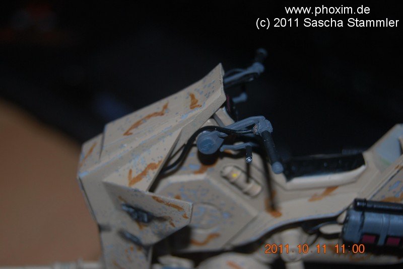 Zufrieden mit diesen Ergebnis setze ich alle Teile des AT-RT zusammen. Kleine Bemalungen wie silberne Hydraulikstäbe und matt Schwarze Lenker-Griffe folgten als nächstes. |