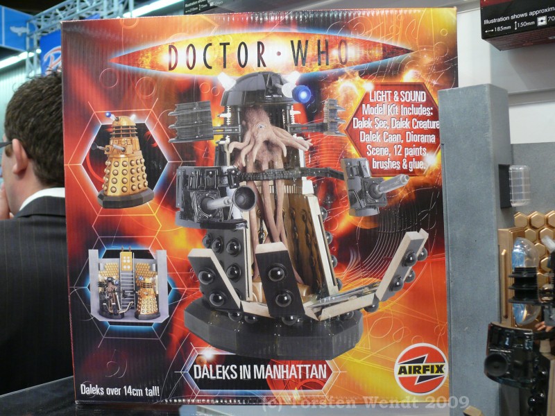 Bei Airfix waren diesmal Modelle zu Shaun the Sheep und Doctor Who zu sehen. Diese waren gebaut und man musste nicht mit Kartons vorlieb nehmen. Auch Airfix wird durch Wiederauflagen den 40ten Jahrestag der Mondlandung zelebrieren. Eine gute Gelegenheit seine Sammlung zu vervollständigen. |